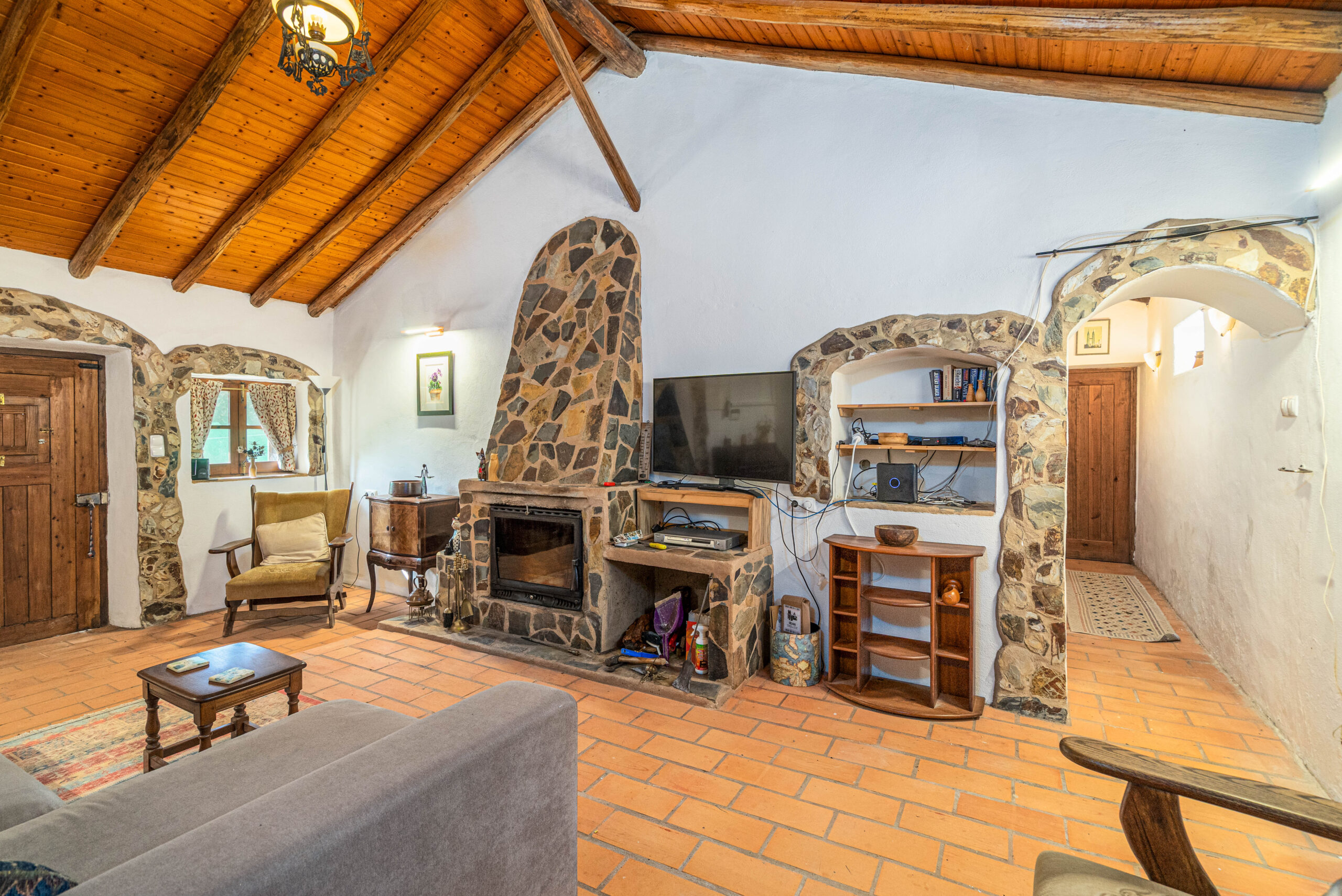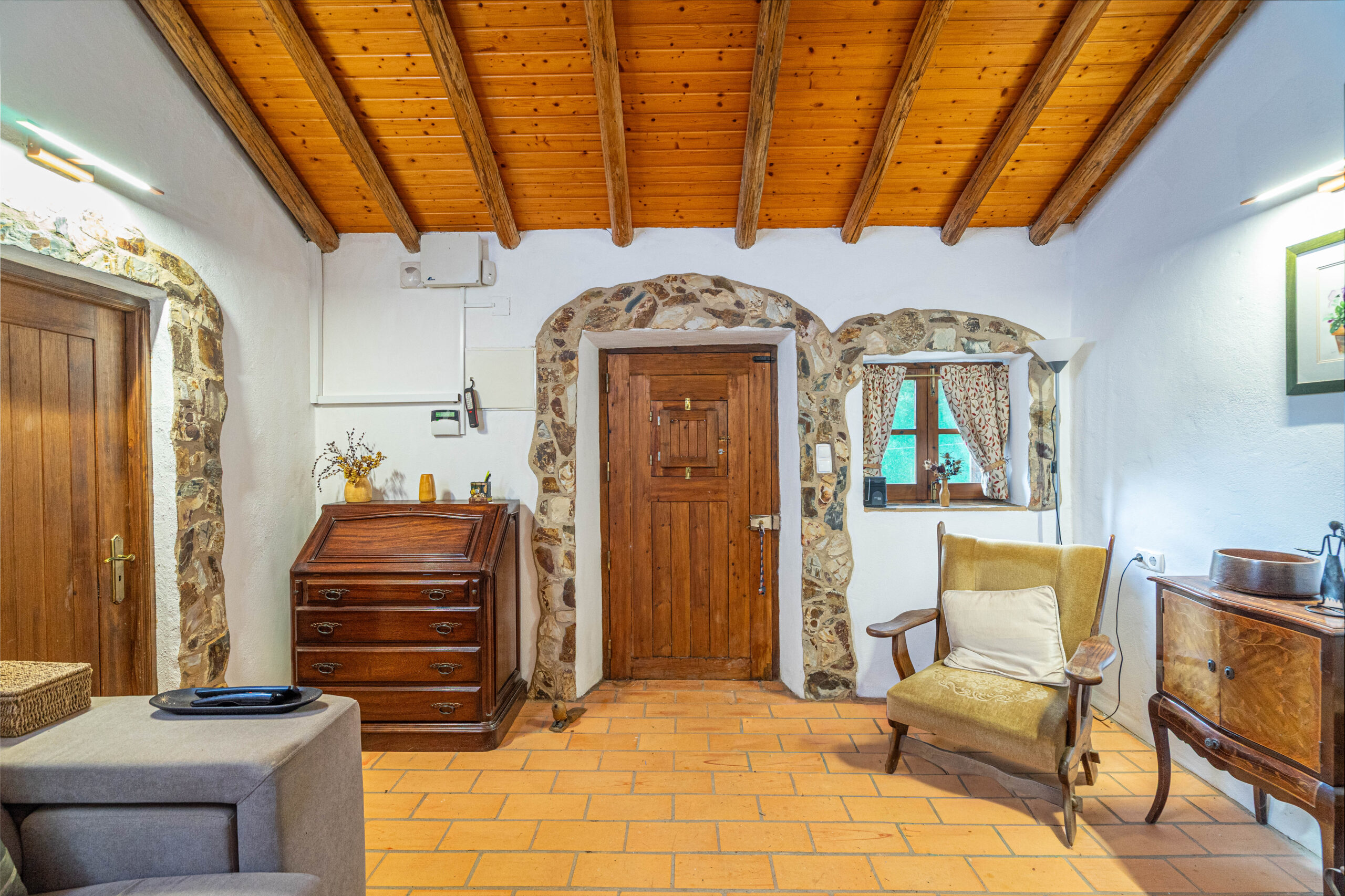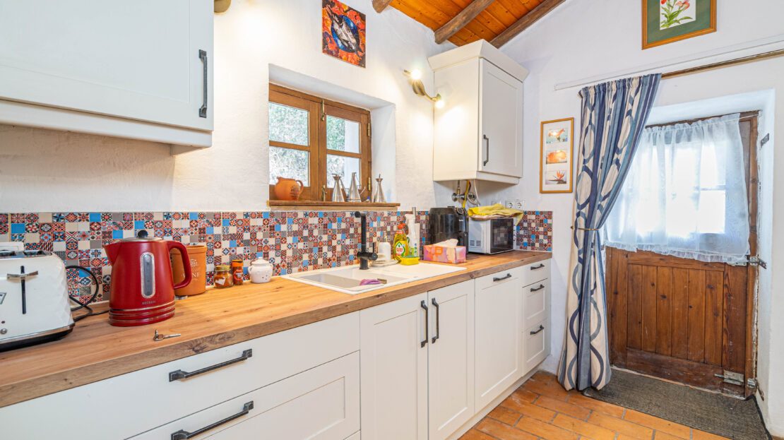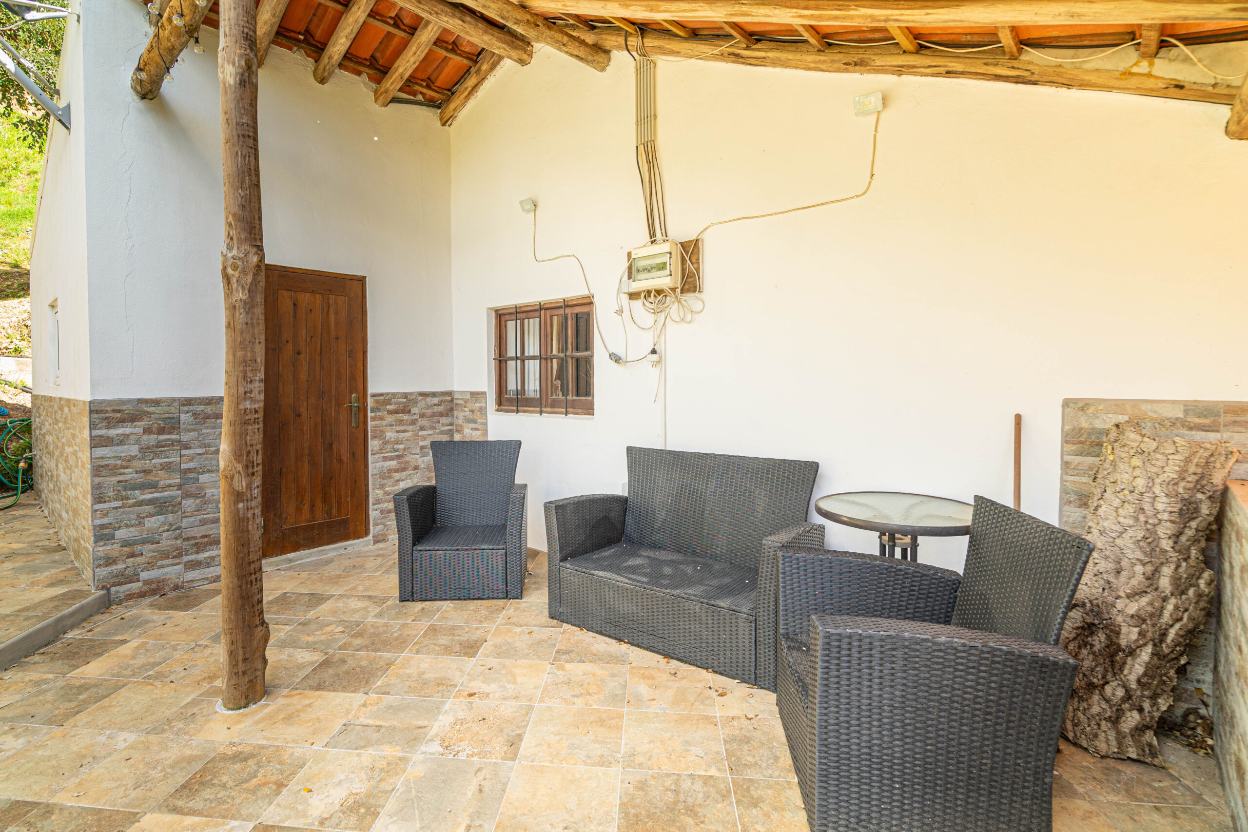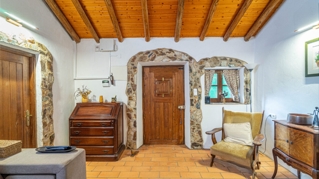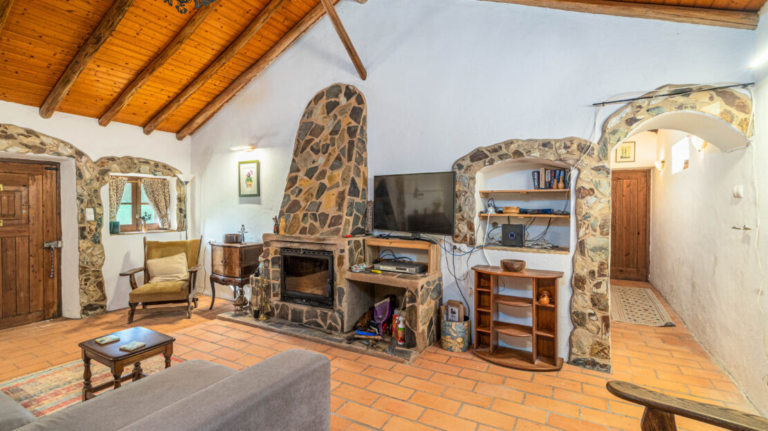A casa apresenta acabamentos rústicos e típicos da região, preservando o charme tradicional. A cozinha encontra-se totalmente equipada, tal como o restante da habitação, pronta a habitar.