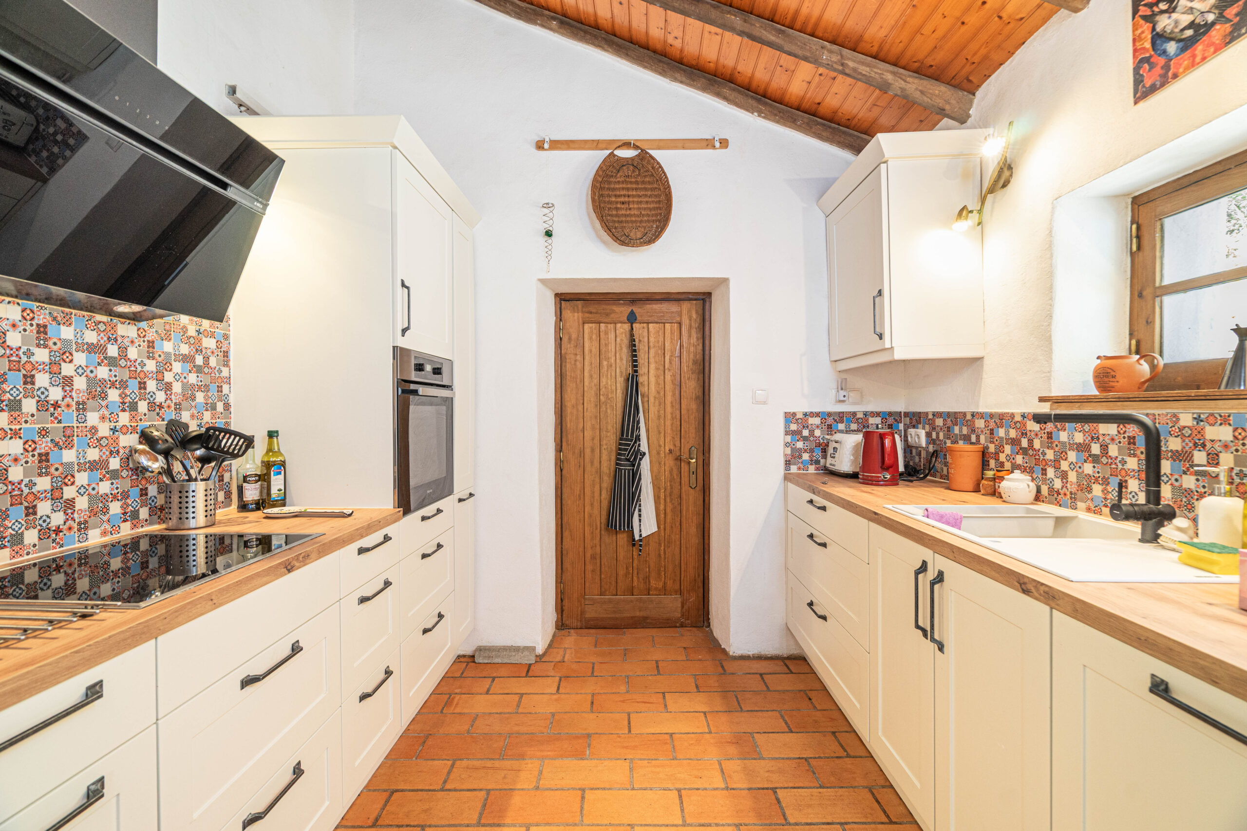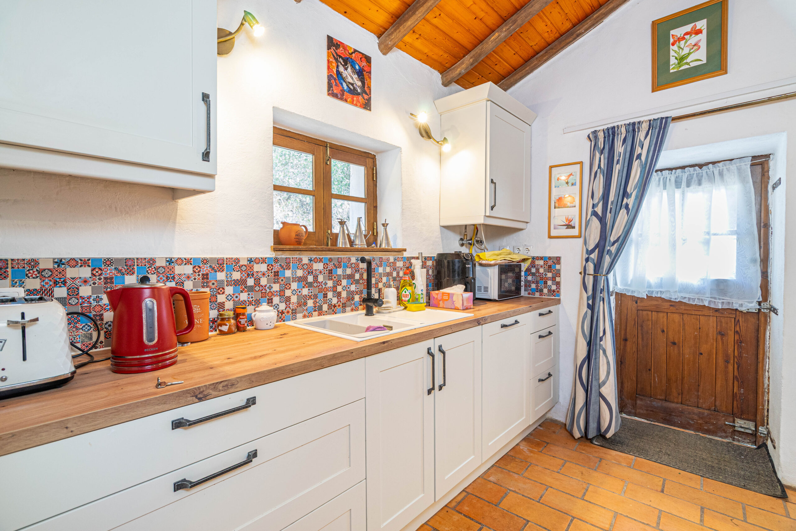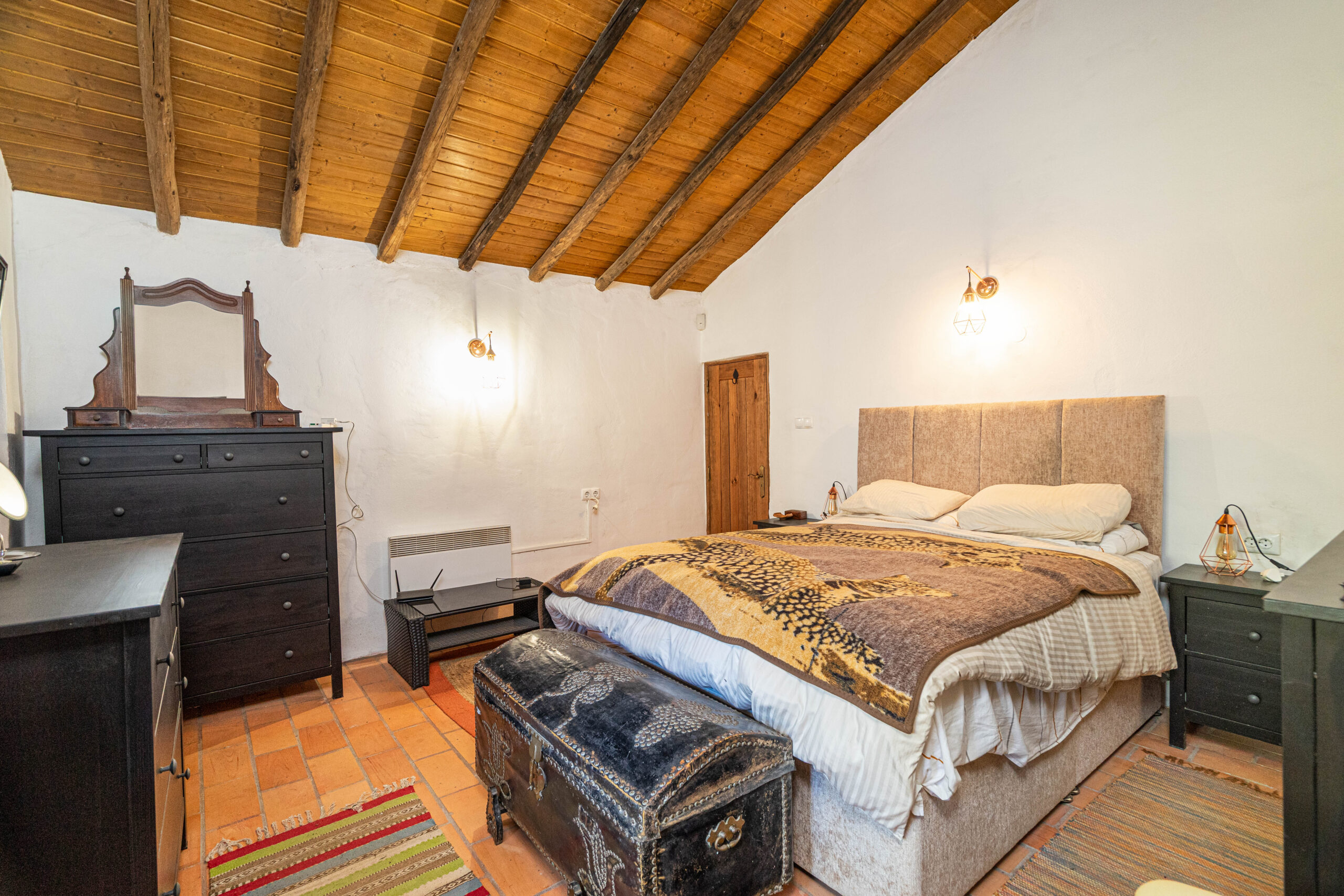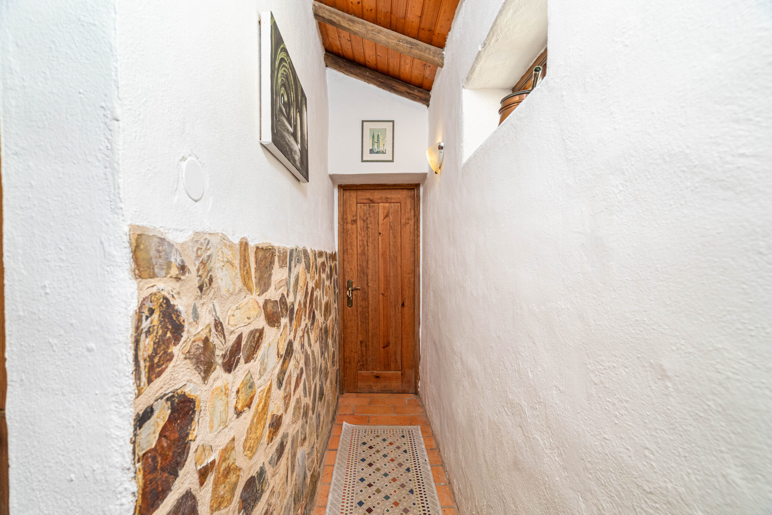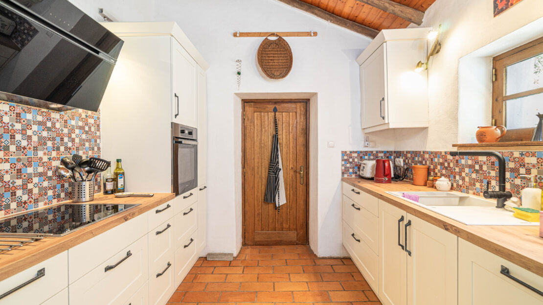 A casa apresenta acabamentos rústicos e típicos da região, preservando o charme tradicional. A cozinha encontra-se totalmente equipada, tal como o restante da habitação, pronta a habitar.