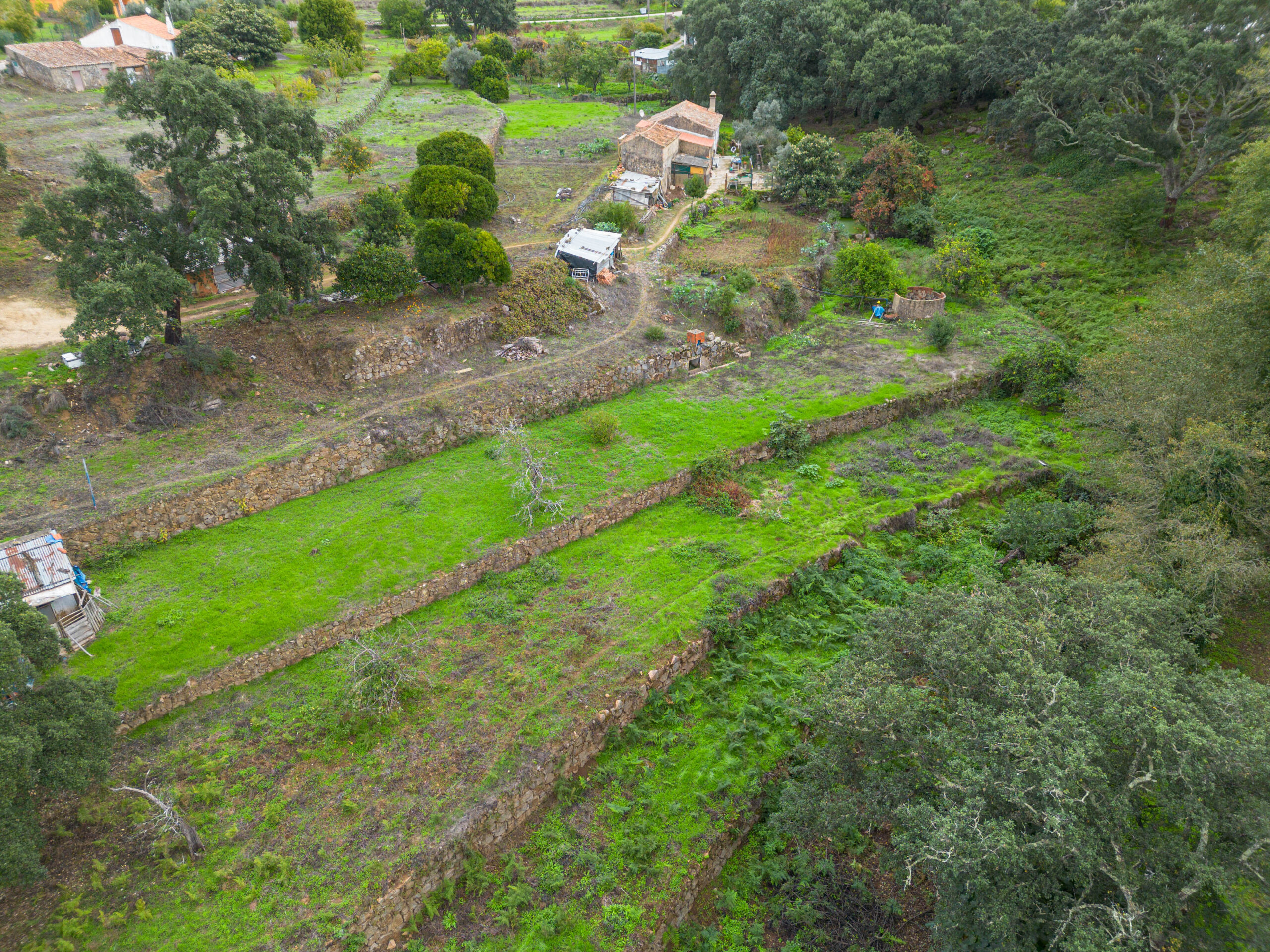 A propriedade conta com um terreno generoso de 16.604 m², onde se destaca um belíssimo montado de sobreiros, do qual é possível obter rendimento. Os socalcos tradicionais e as amplas zonas de terreno plano tornam este espaço ideal para agricultura, hortas, pomares ou projetos de sustentabilidade.