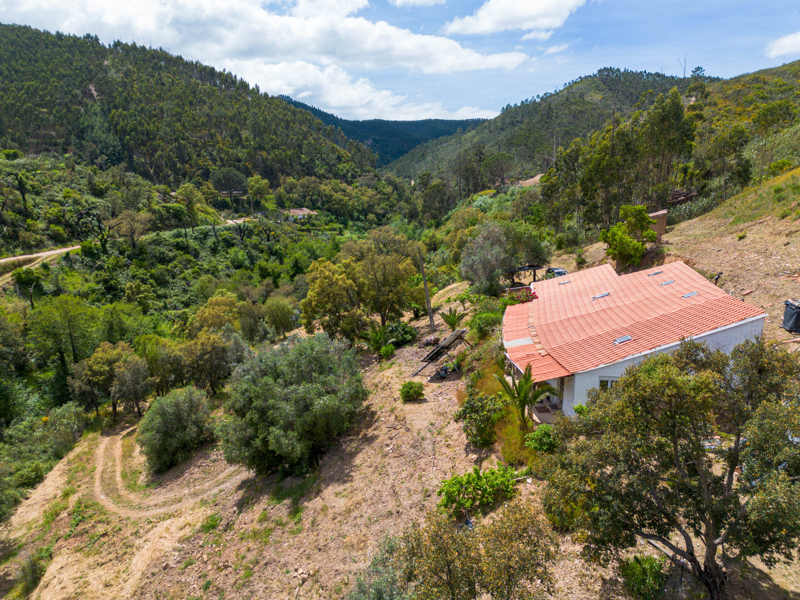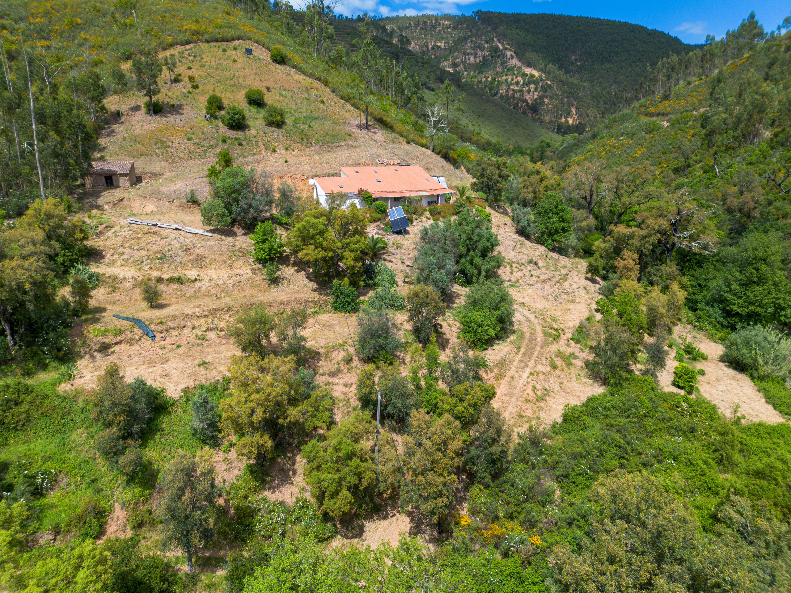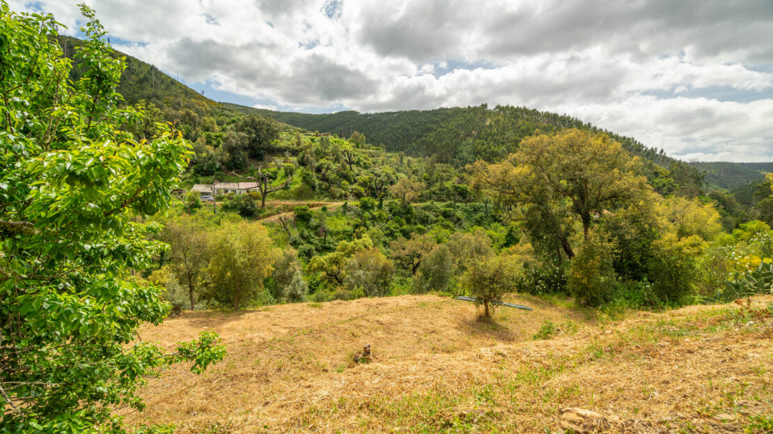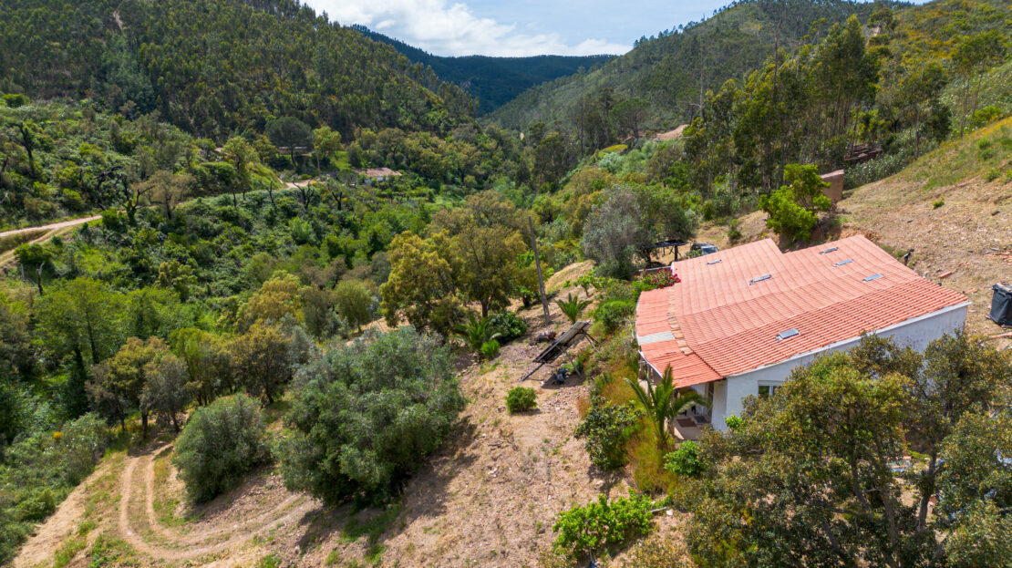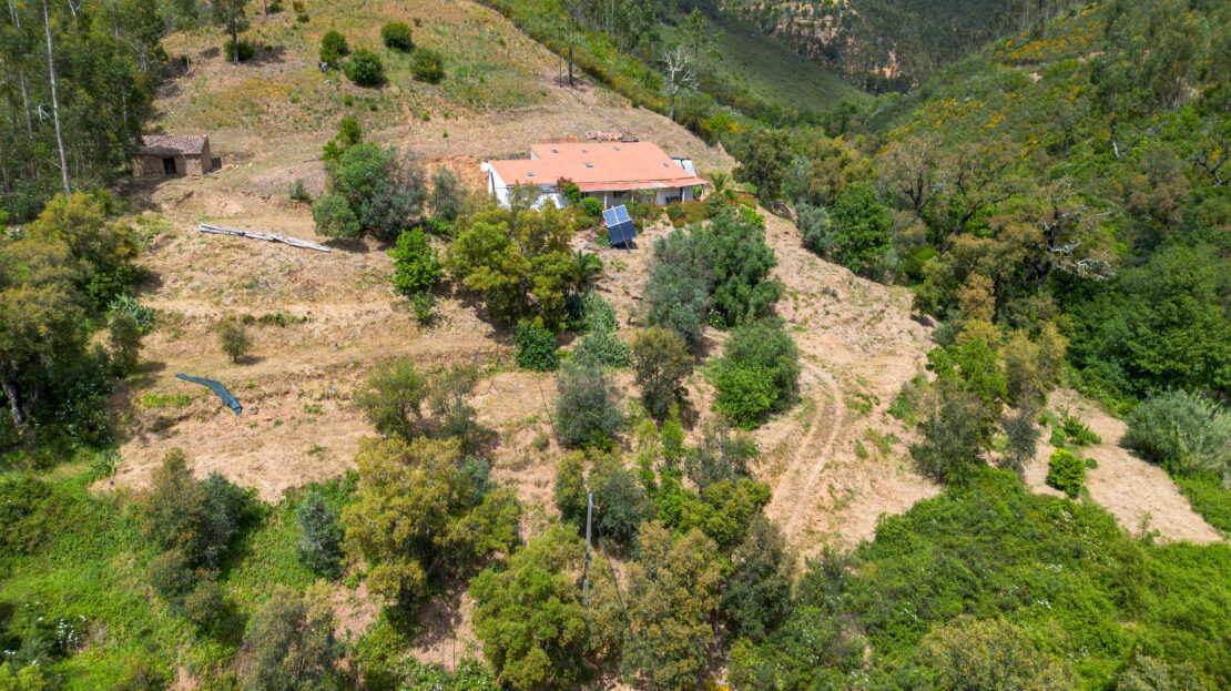 Virada a sul, beneficia de excelente exposição solar e vistas desafogadas sobre a paisagem envolvente. A propriedade dispõe de sistema de painéis solares e tem ligação à rede elétrica pública muito próximo da casa.