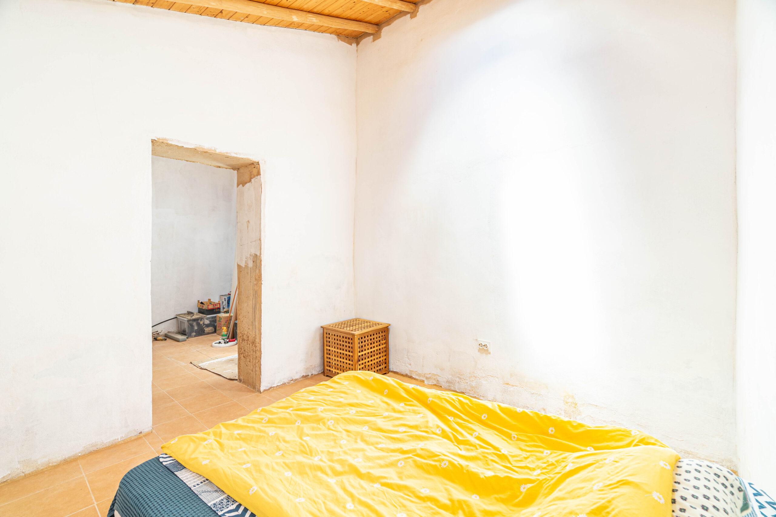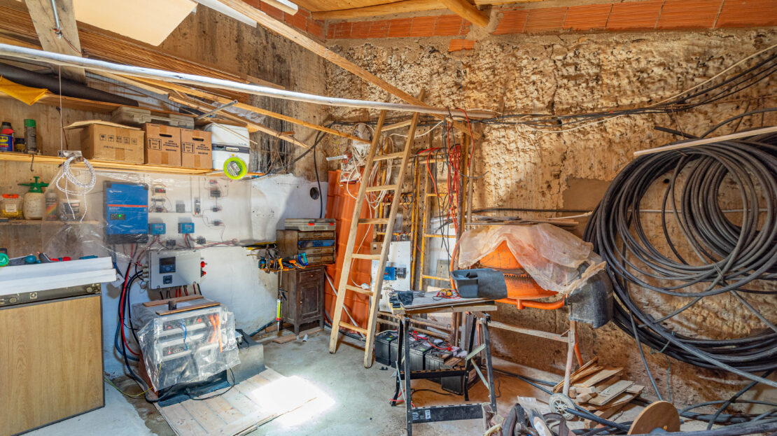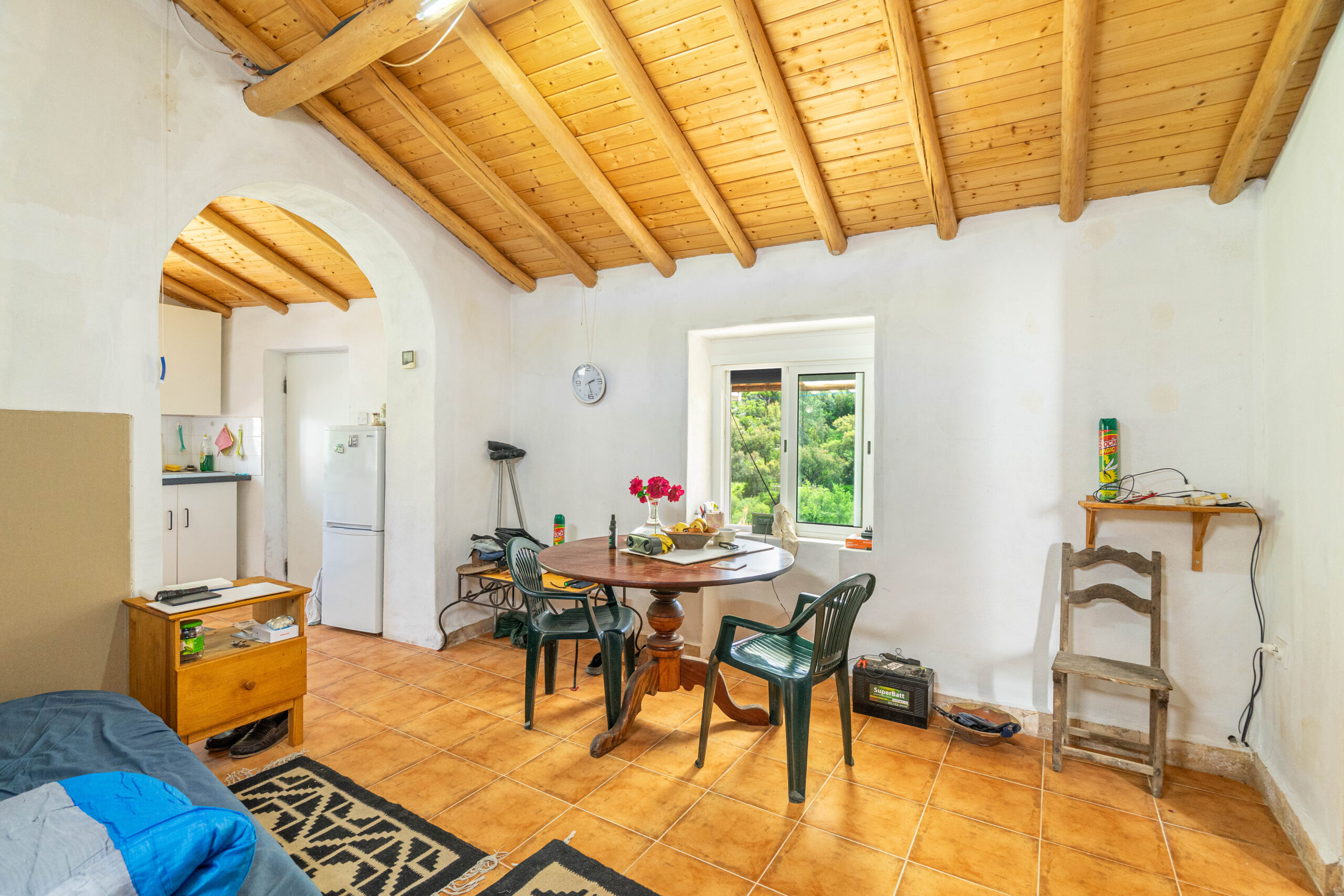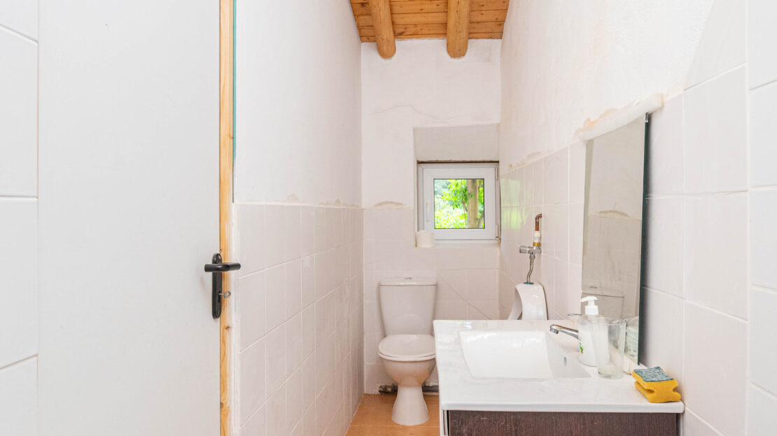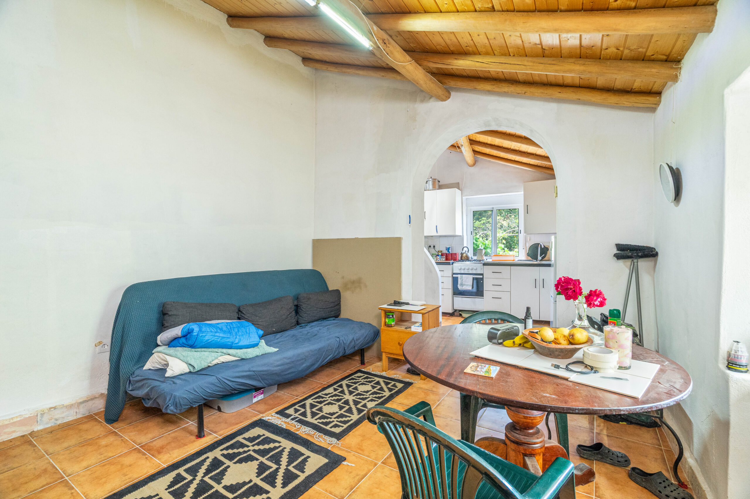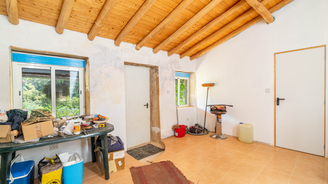 A propriedade dispõe de uma moradia térrea renovada, composta por cozinha funcional, salas amplas e luminosas, dois quartos (um deles em suite), duas casas de banho e ainda uma divisão adicional atualmente utilizada como arrecadação.
