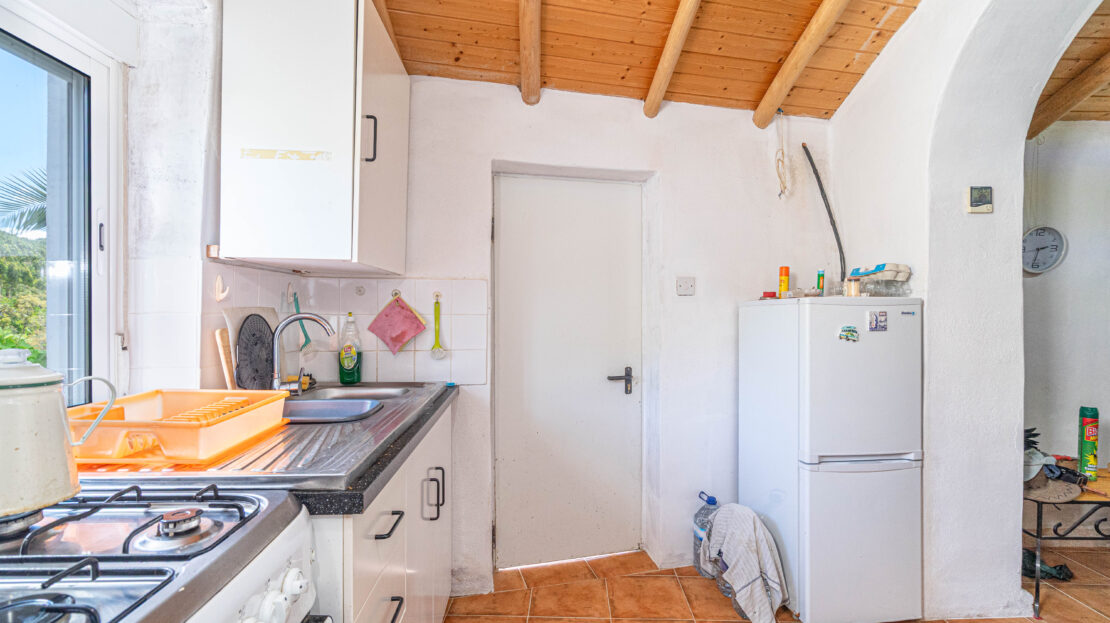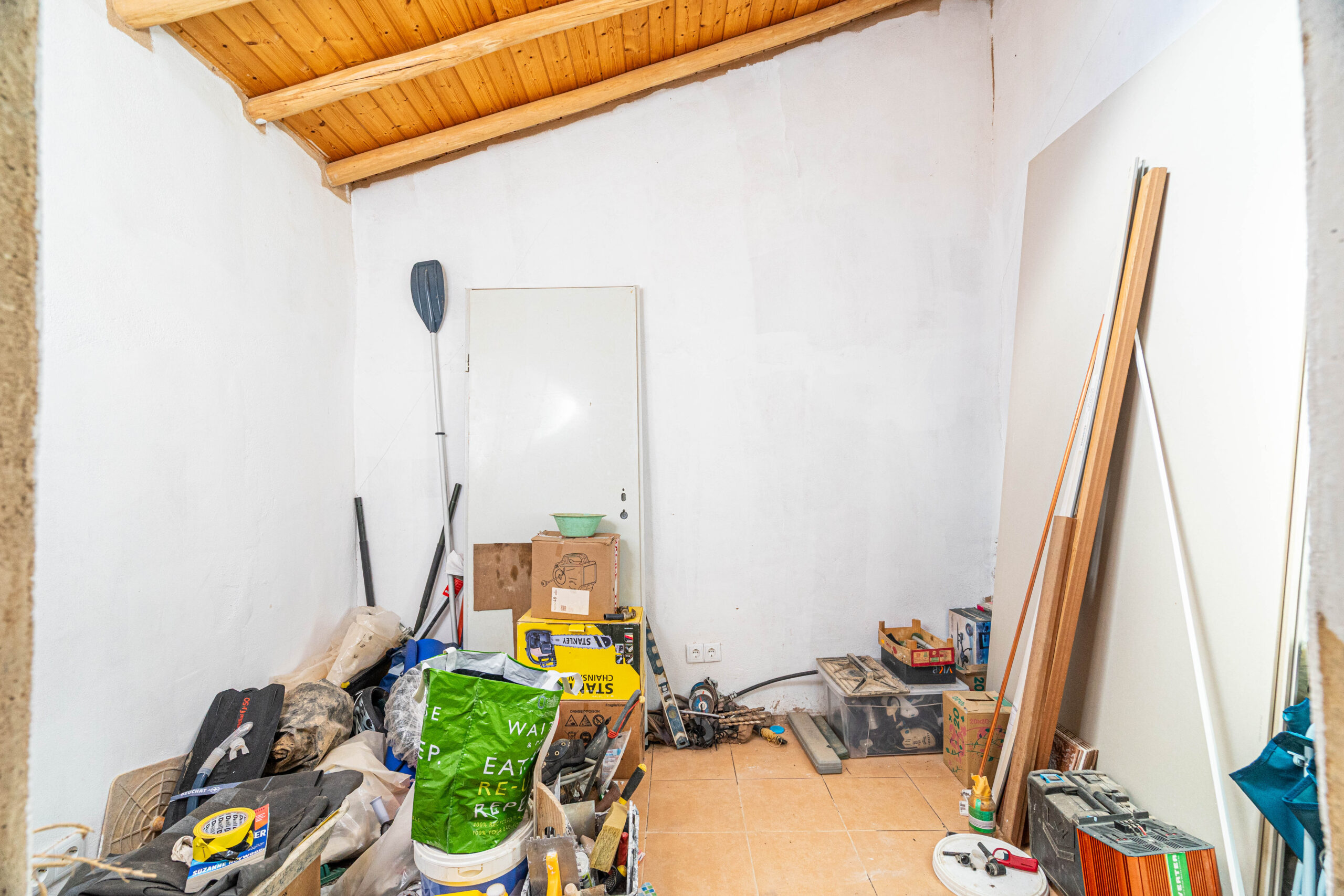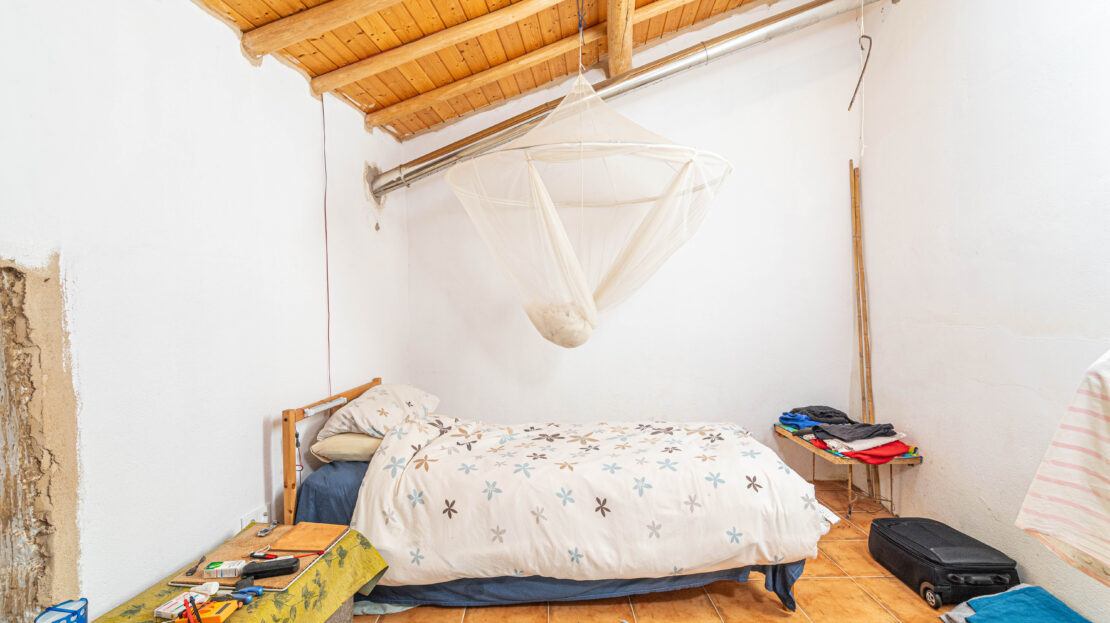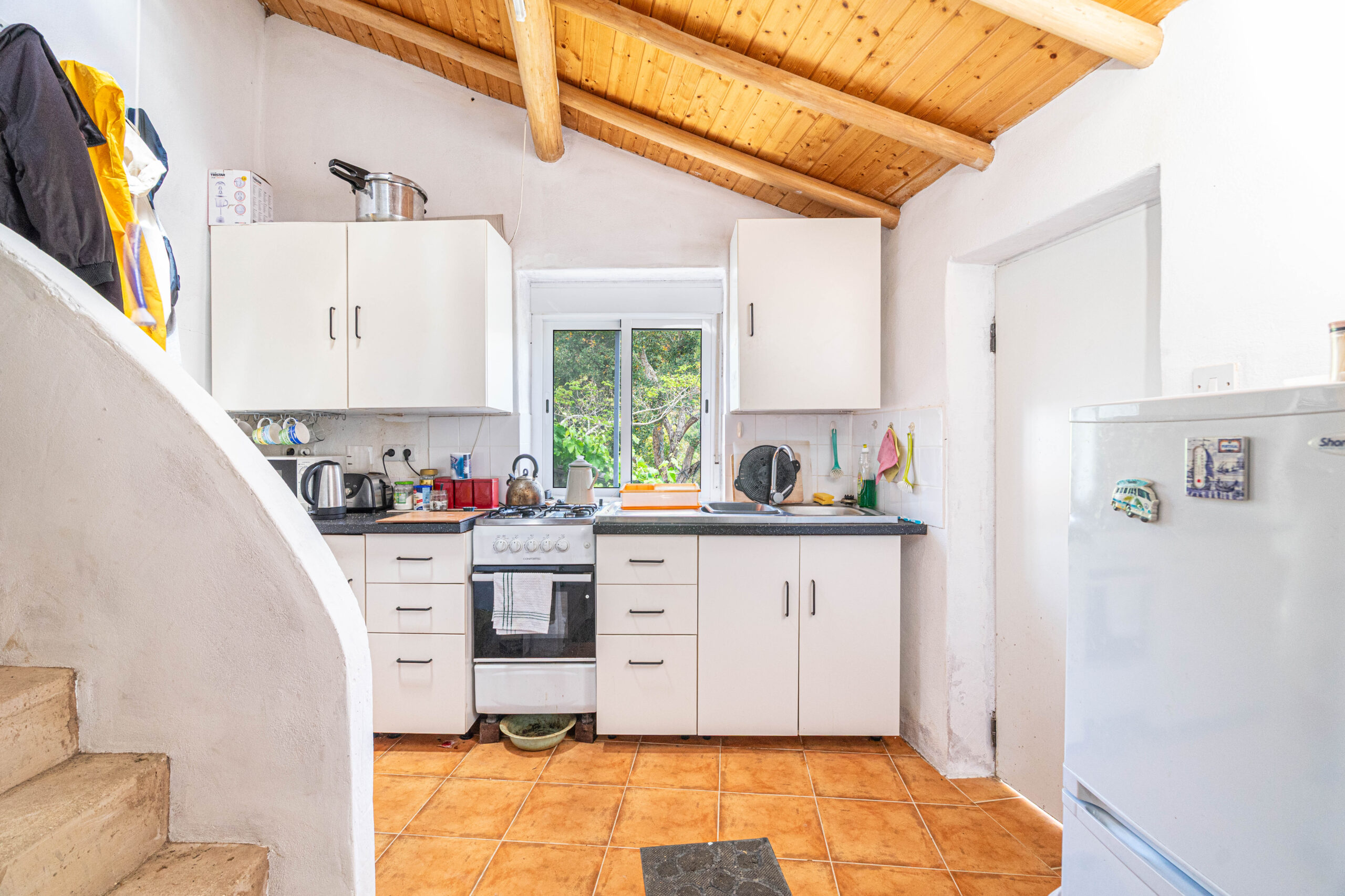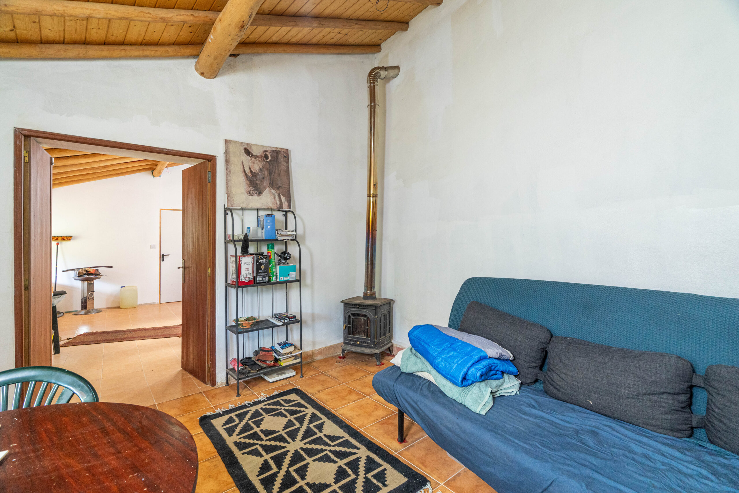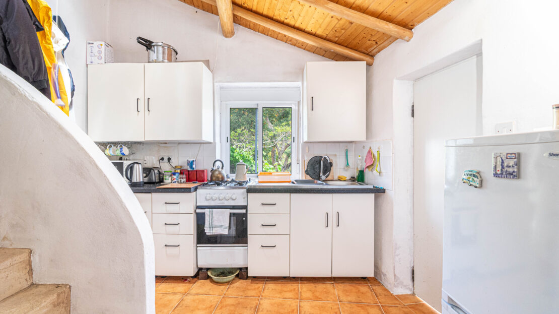 A propriedade dispõe de uma moradia térrea renovada, composta por cozinha funcional, salas amplas e luminosas, dois quartos (um deles em suite), duas casas de banho e ainda uma divisão adicional atualmente utilizada como arrecadação.