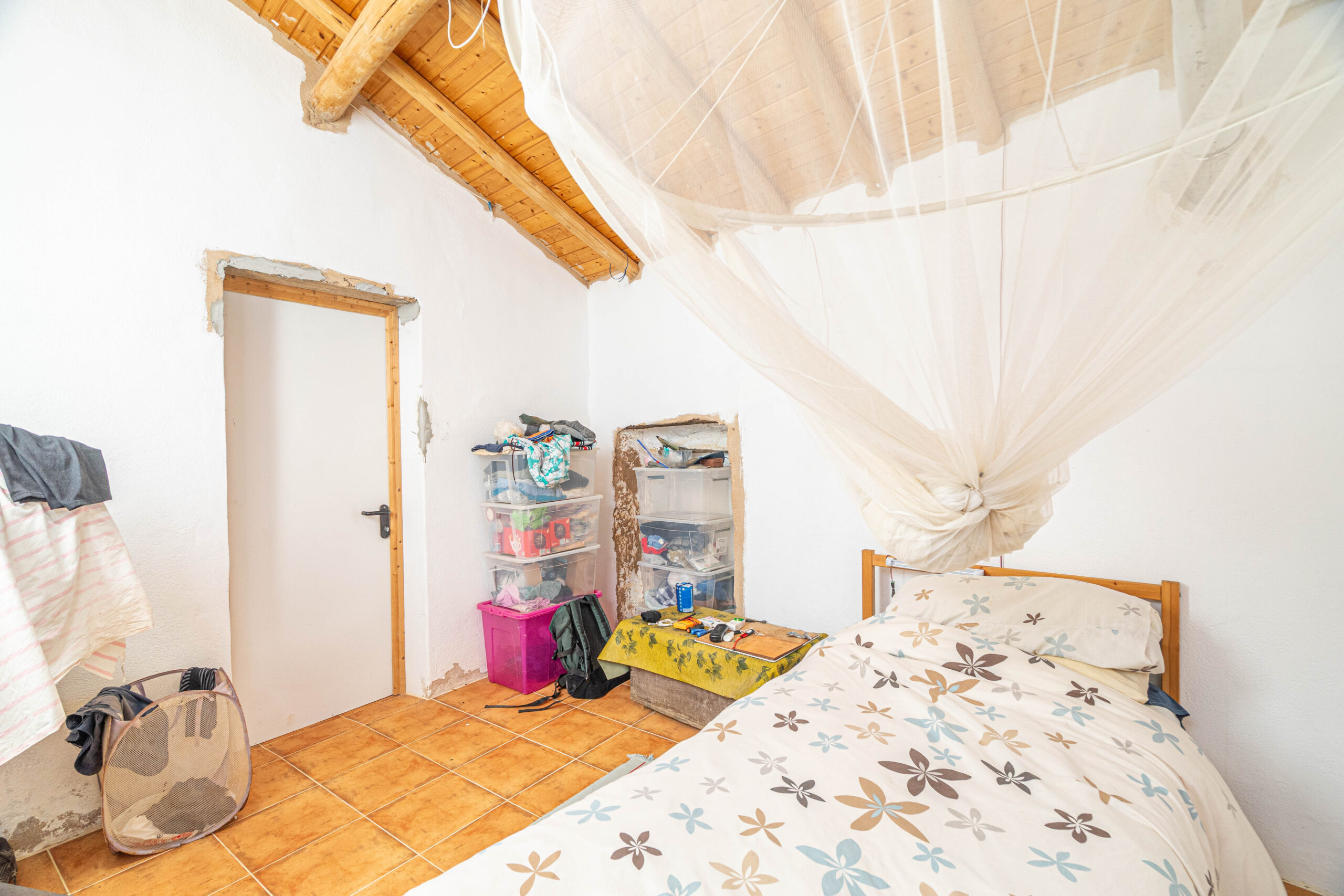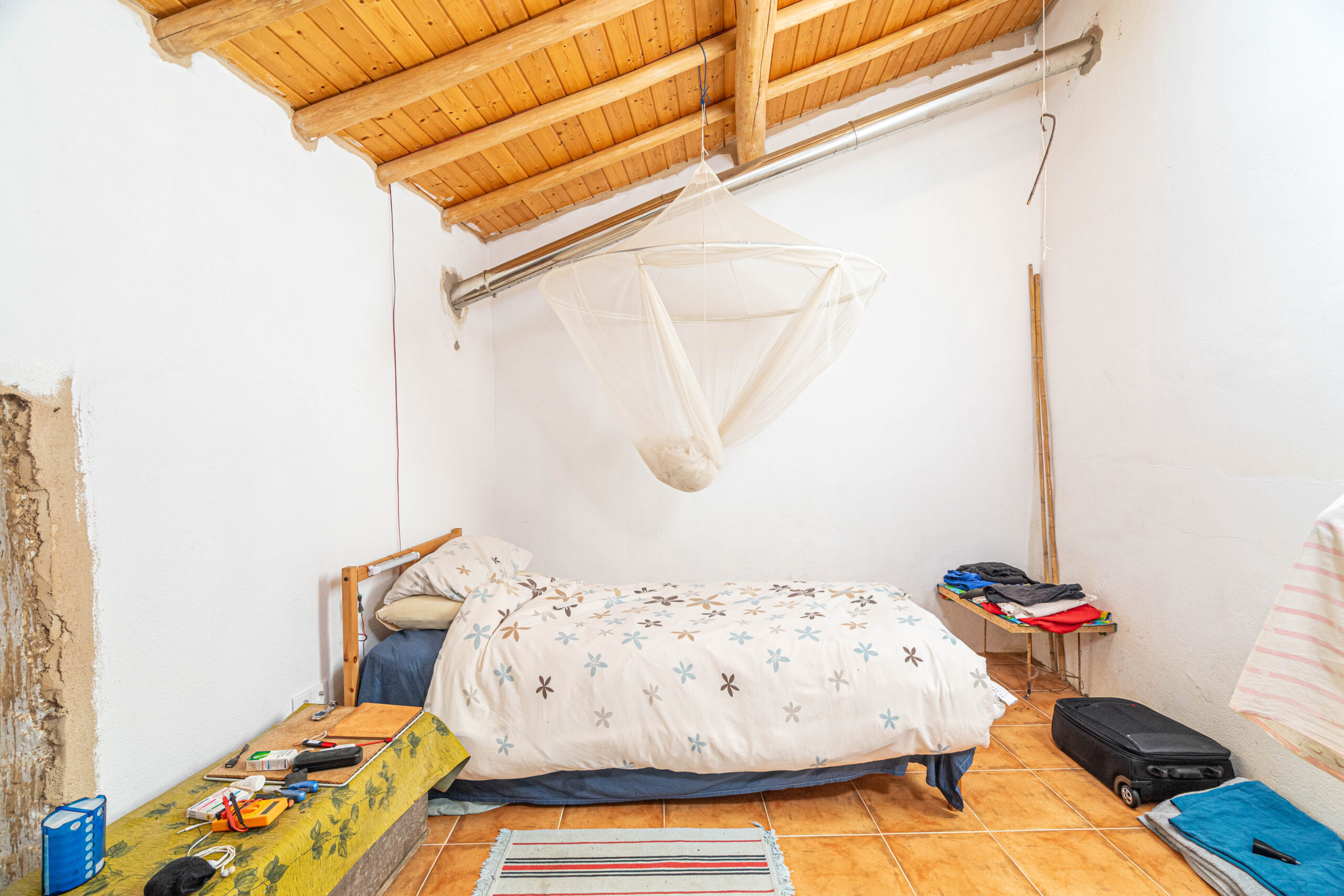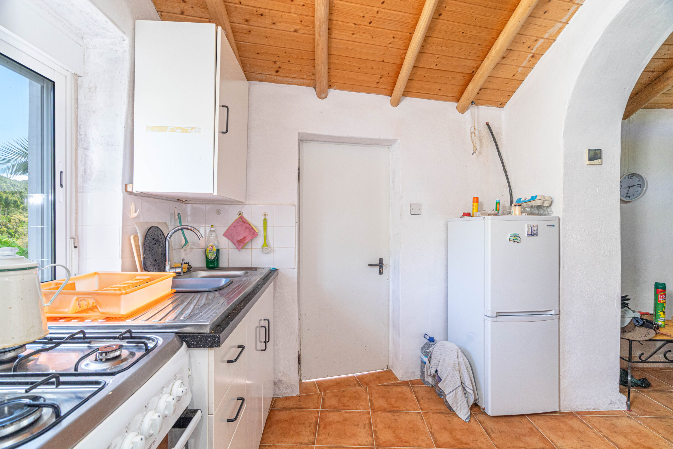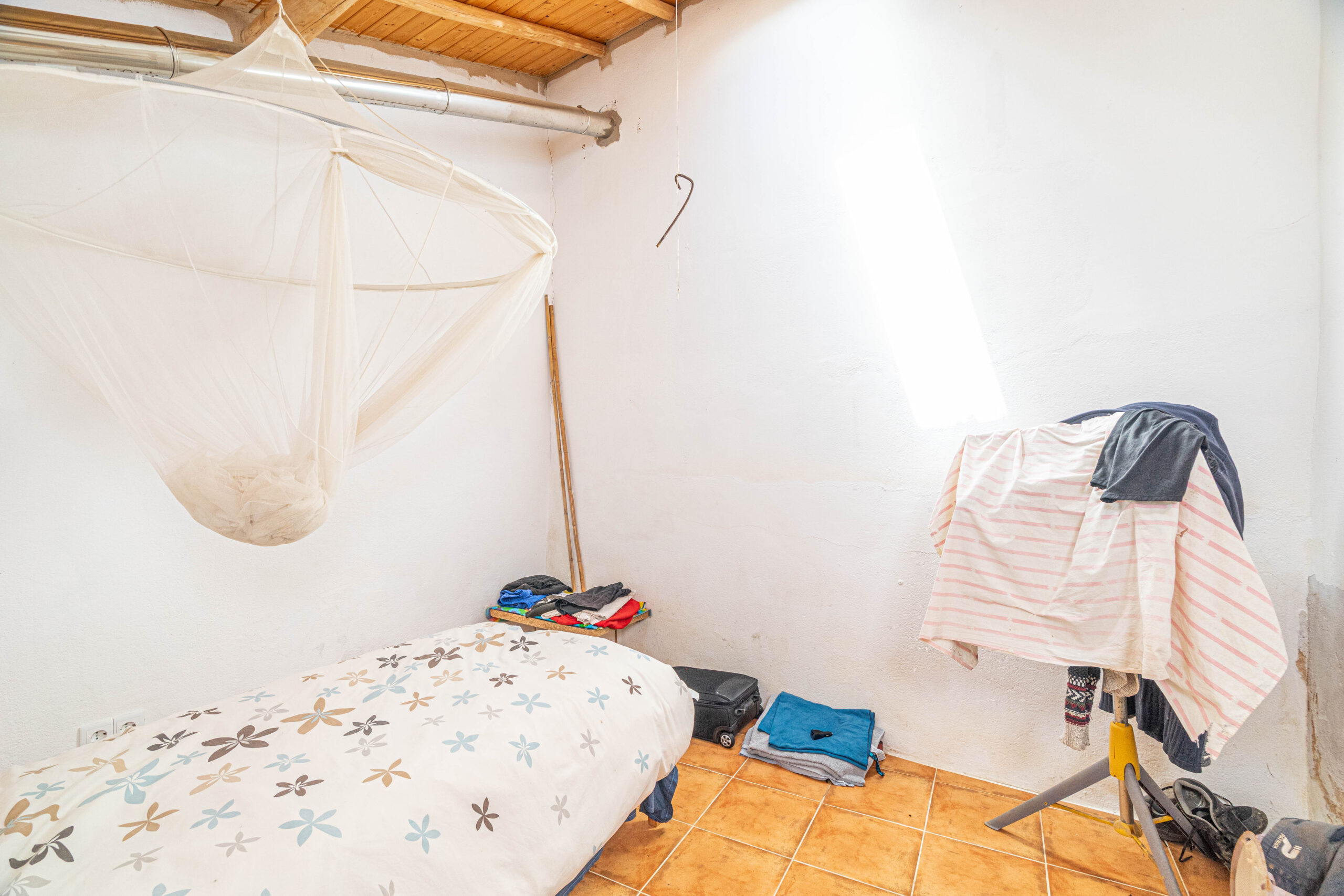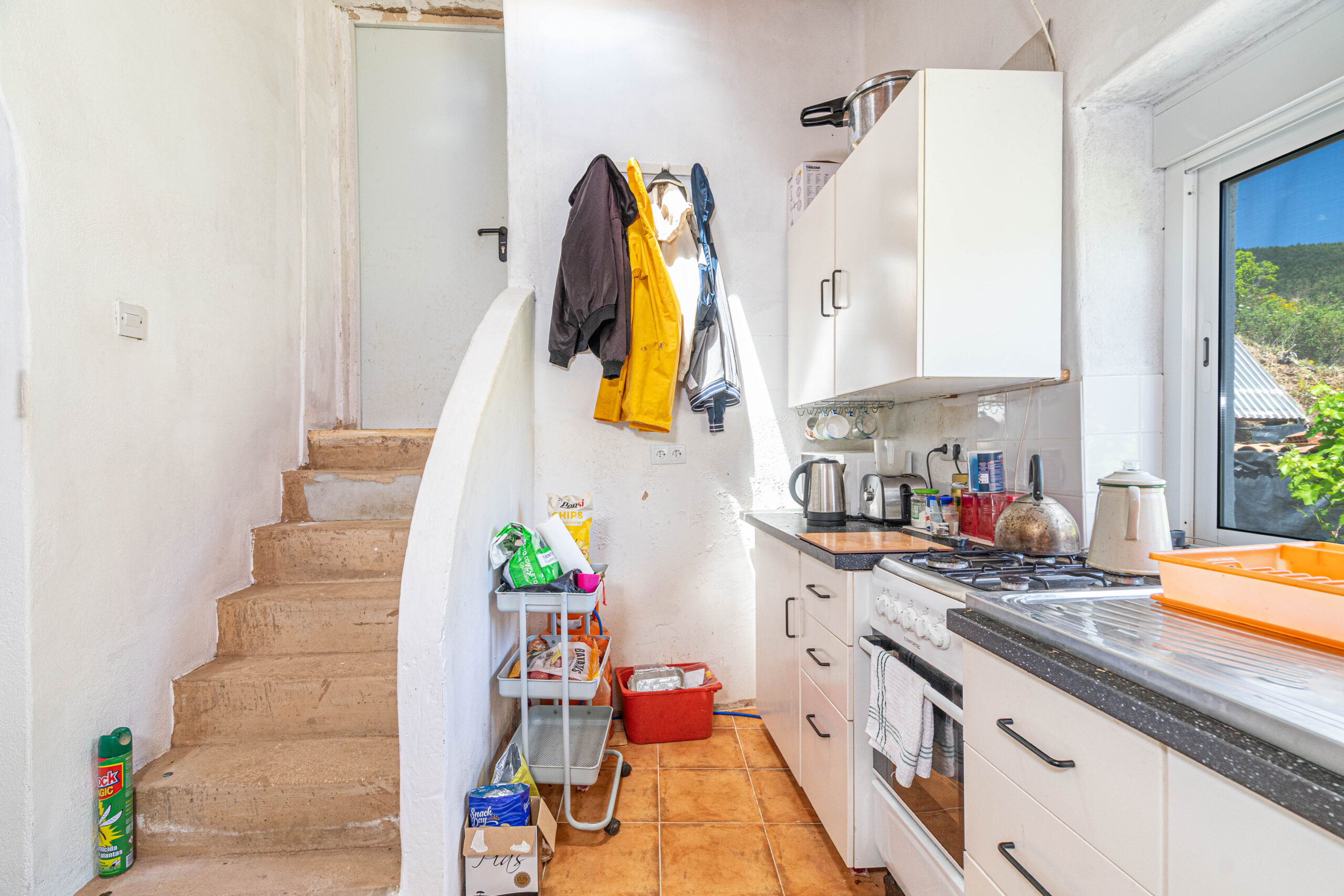 A propriedade dispõe de uma moradia térrea renovada, composta por cozinha funcional, salas amplas e luminosas, dois quartos (um deles em suite), duas casas de banho e ainda uma divisão adicional atualmente utilizada como arrecadação.