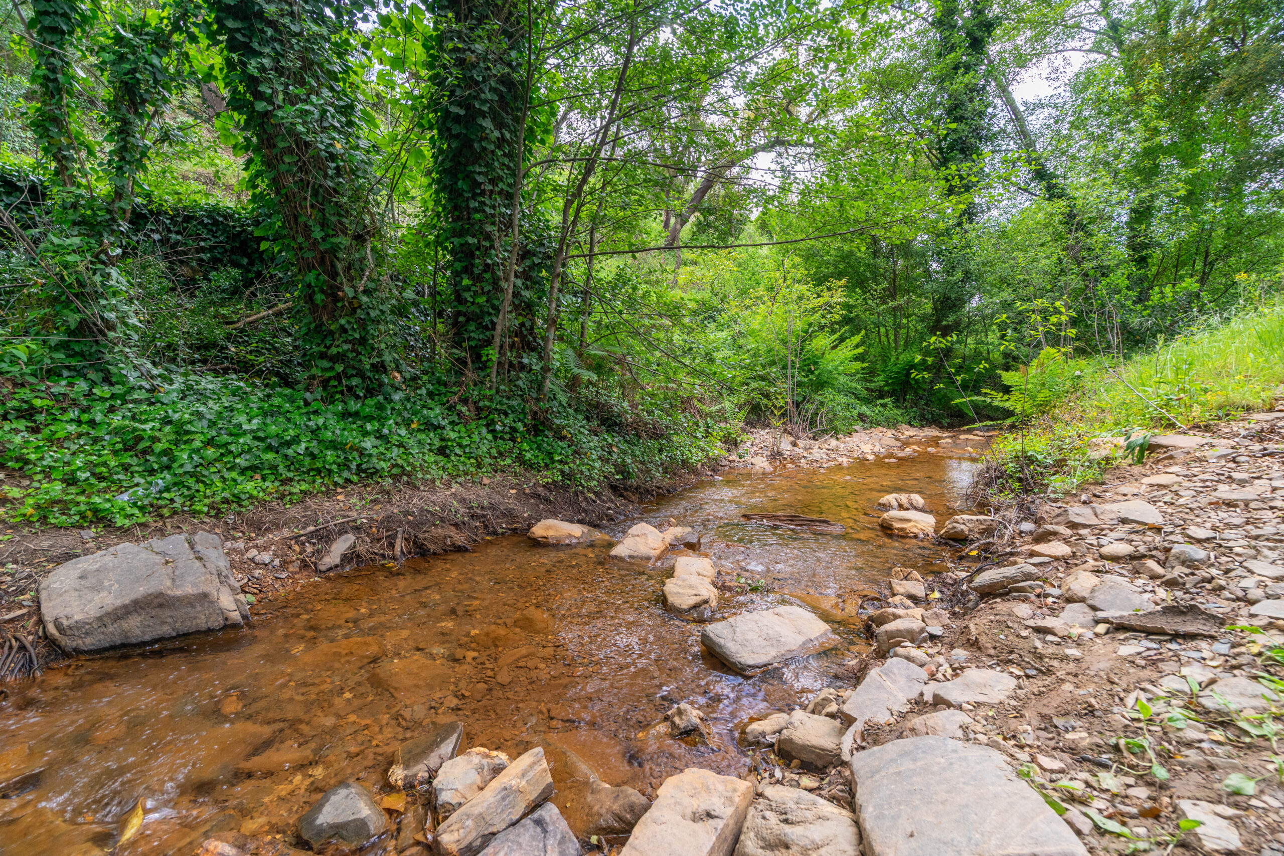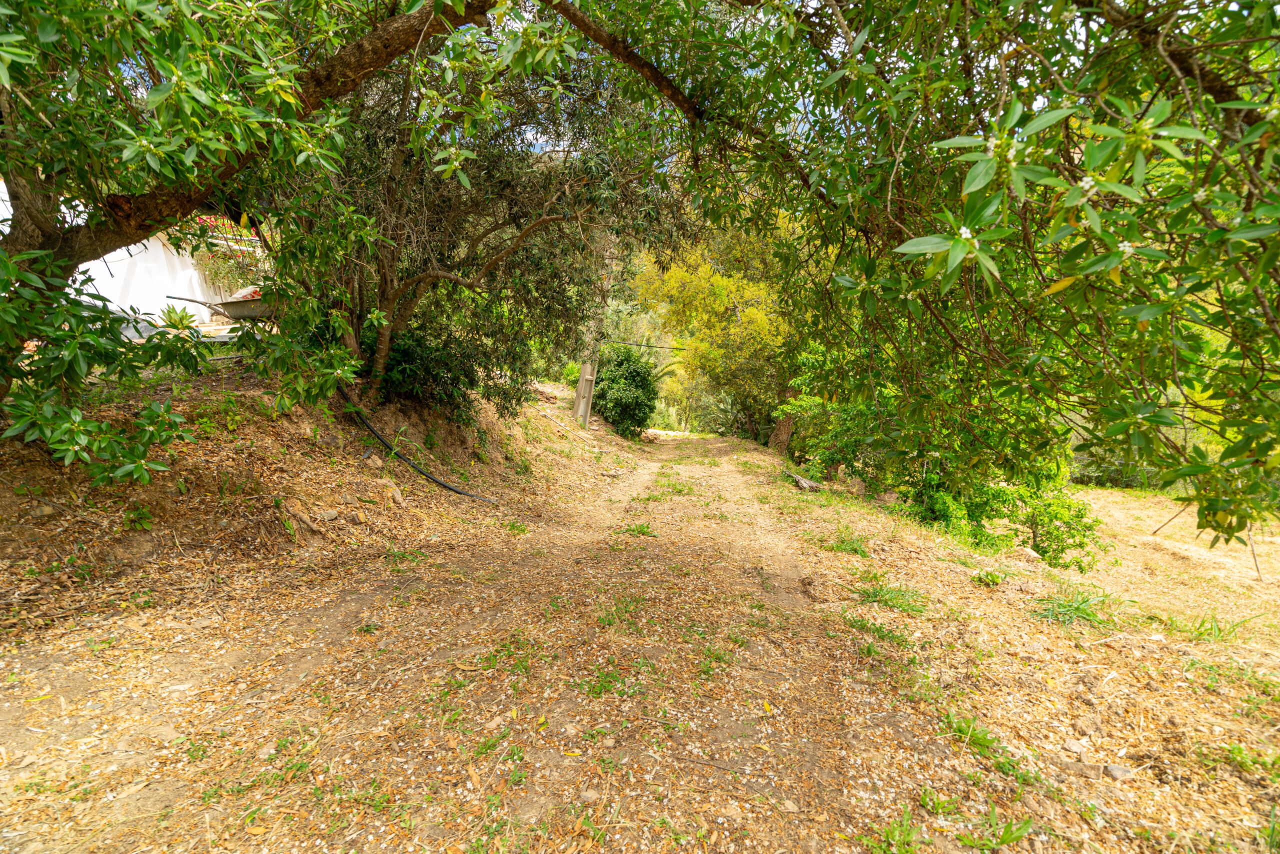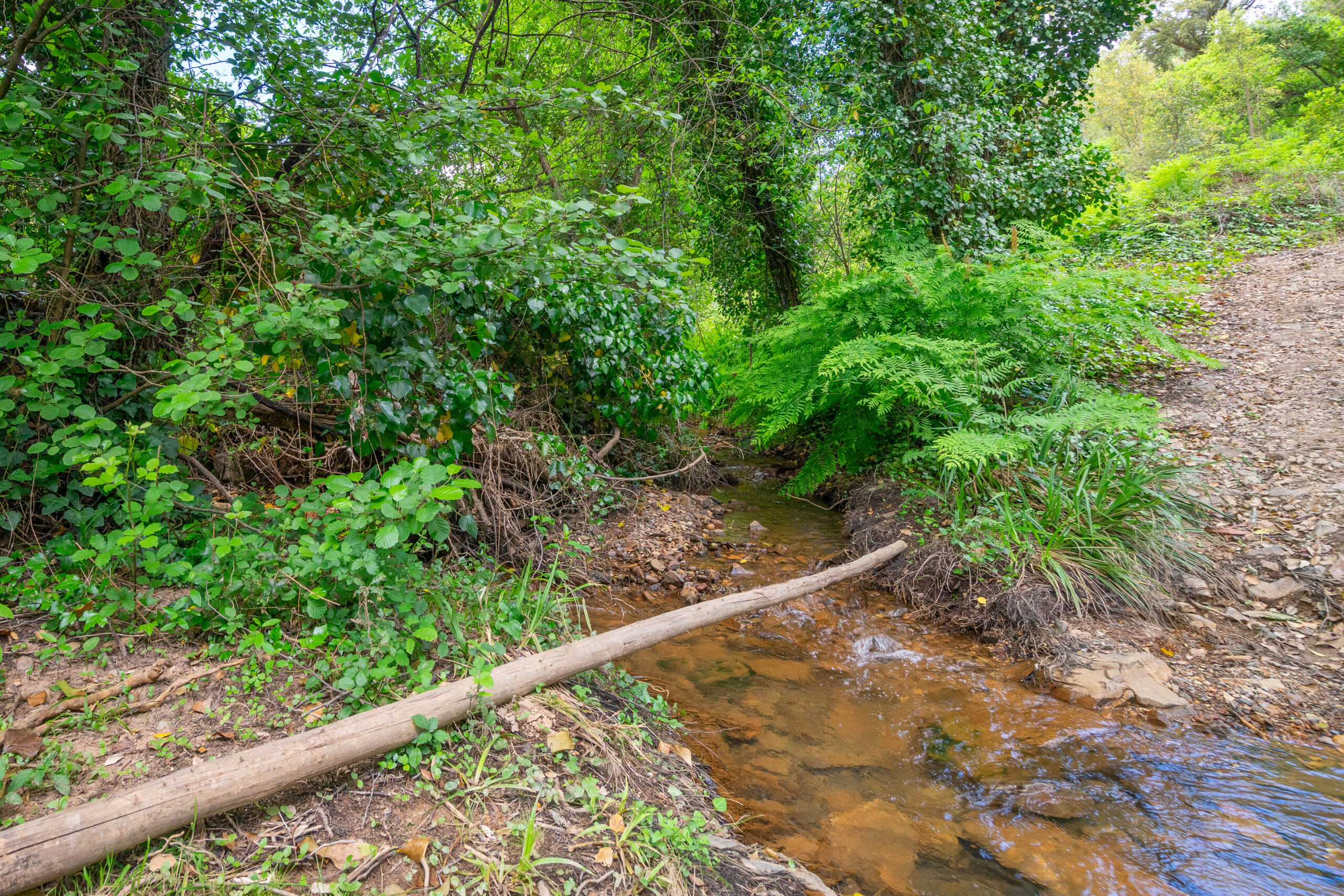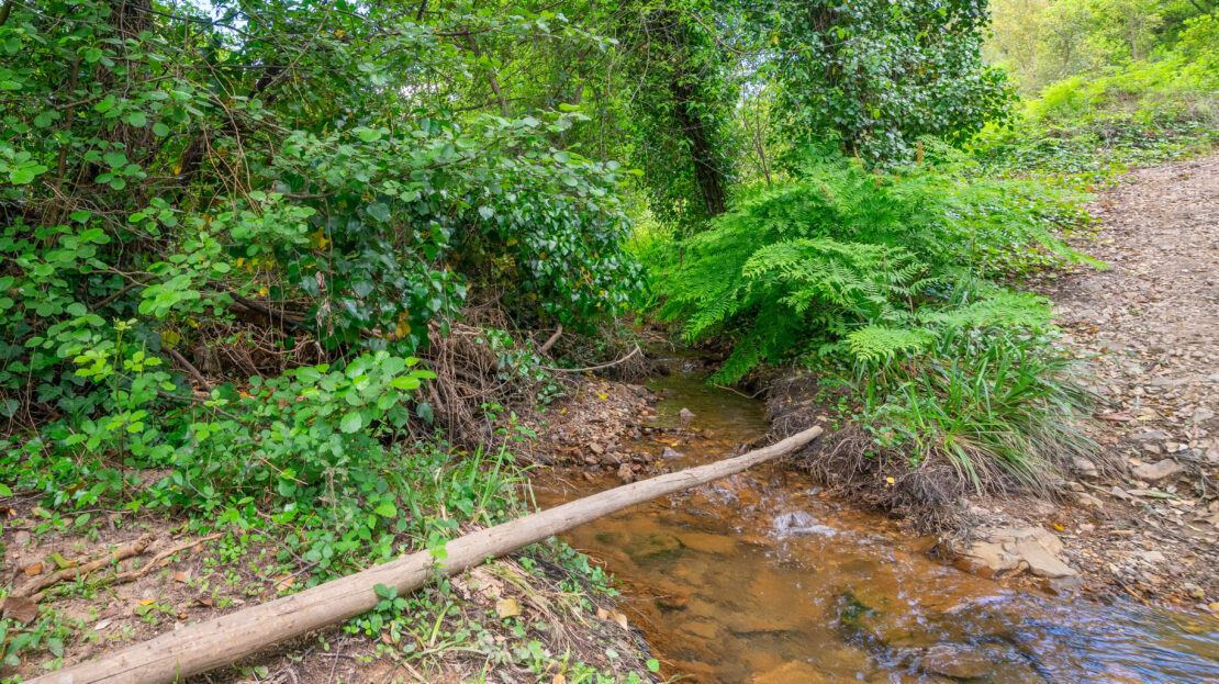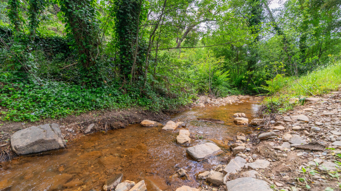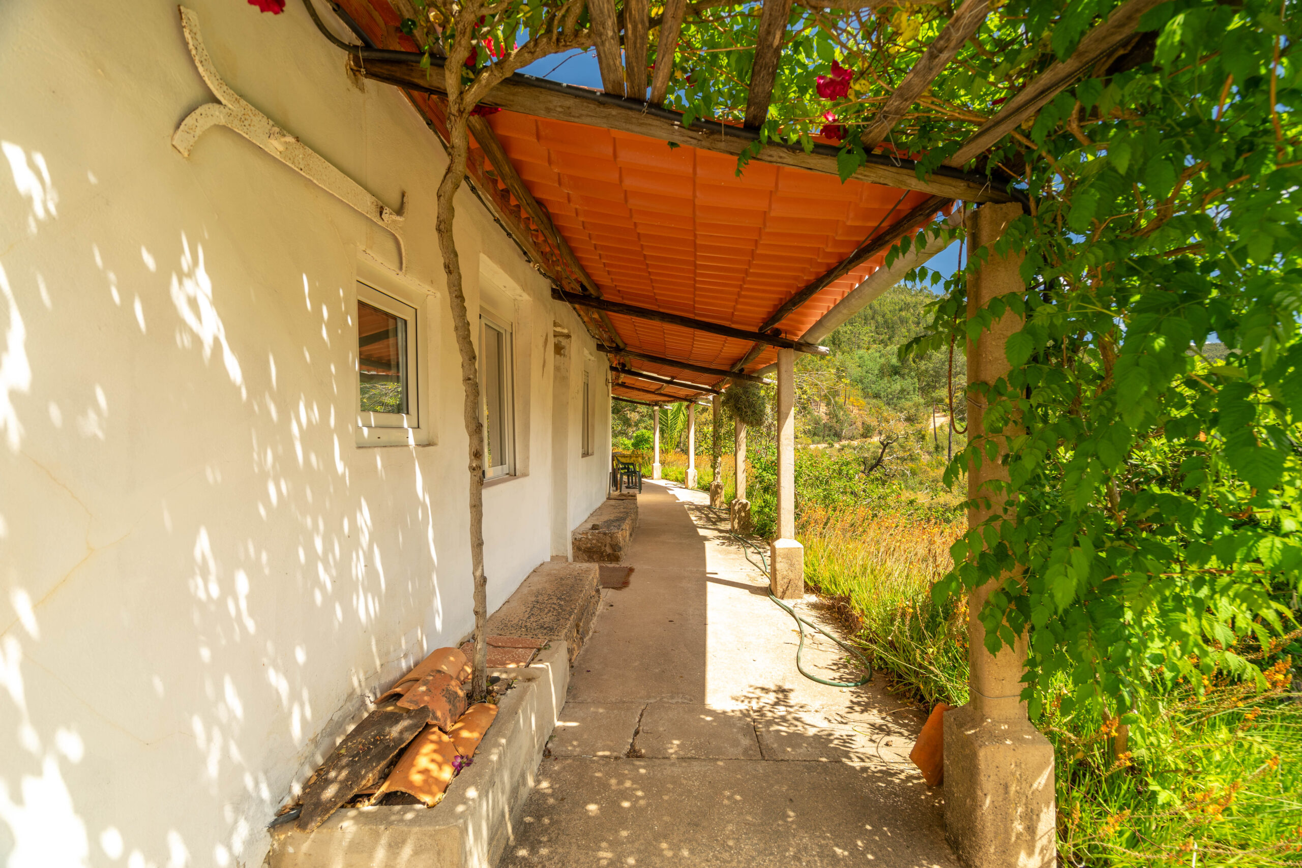 No exterior, destaca-se a abundância de água, com dois nascentes e uma ribeira que atravessa a propriedade, criando um ambiente único e relaxante. Conta ainda com canteiros ideais para cultivo e diversas árvores de fruto.