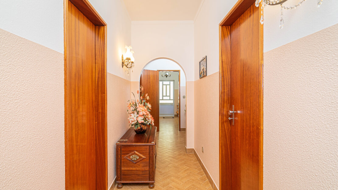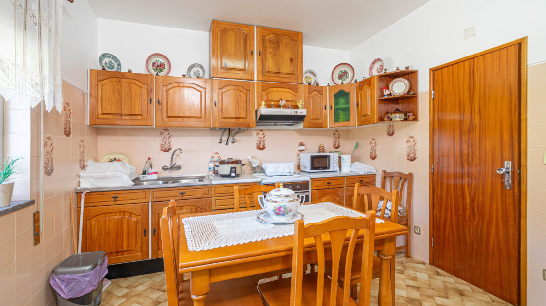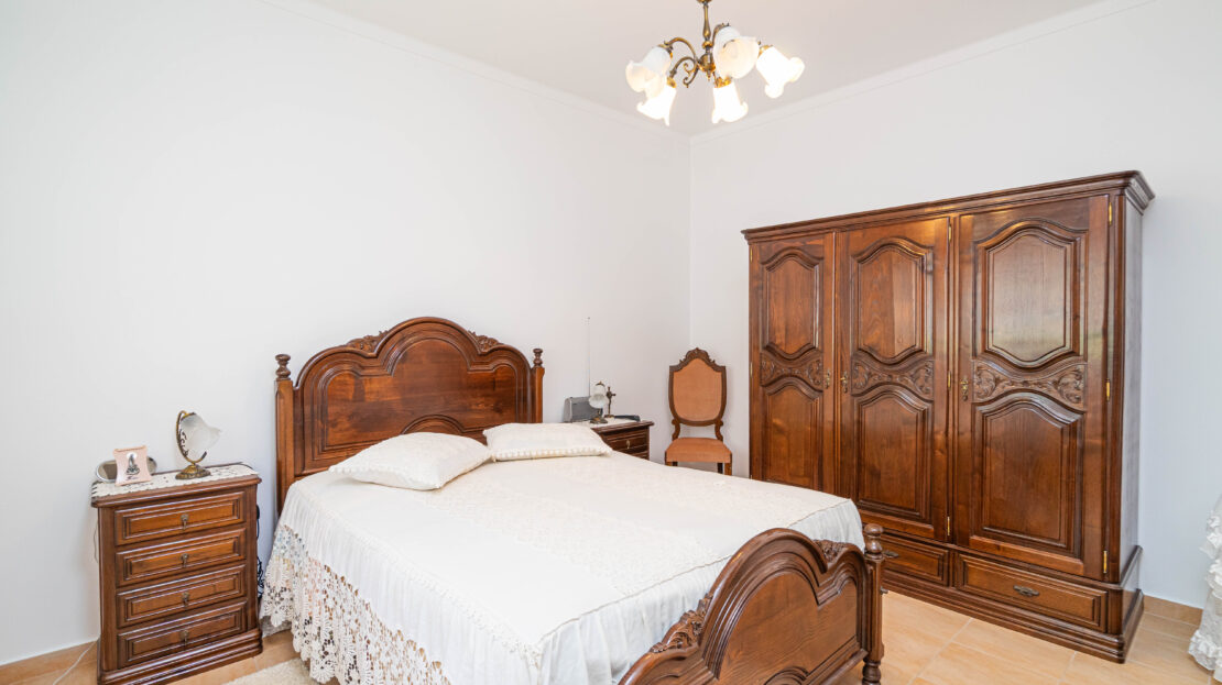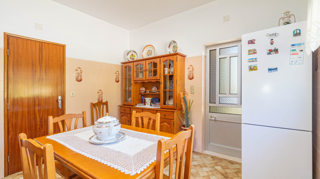 A moradia T3, com 135 m² de área bruta privativa, é composta por três quartos, sala, cozinha, duas casas de banho, despensa e varanda. Destaca-se pelas suas áreas generosas, excelente exposição solar e pelo ótimo estado de conservação, evidenciando a qualidade da construção.