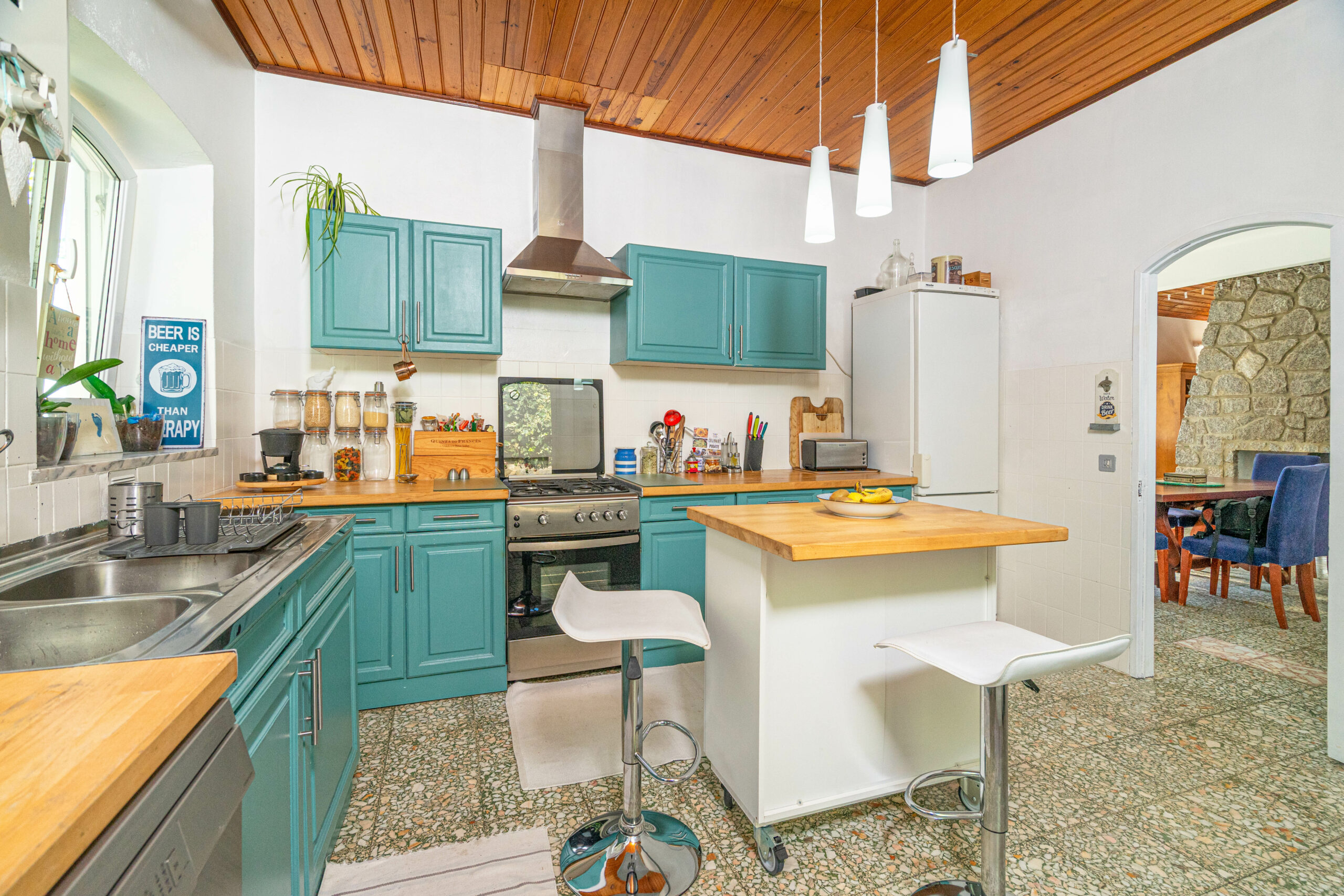 Distribuída por dois pisos, a casa conta com 4 quartos, uma ampla sala de estar, cozinha totalmente equipada, aquecimento central elétrico, várias zonas de arrumação e ainda um pequeno estúdio que pode ser utilizado como quinto quarto ou escritório.