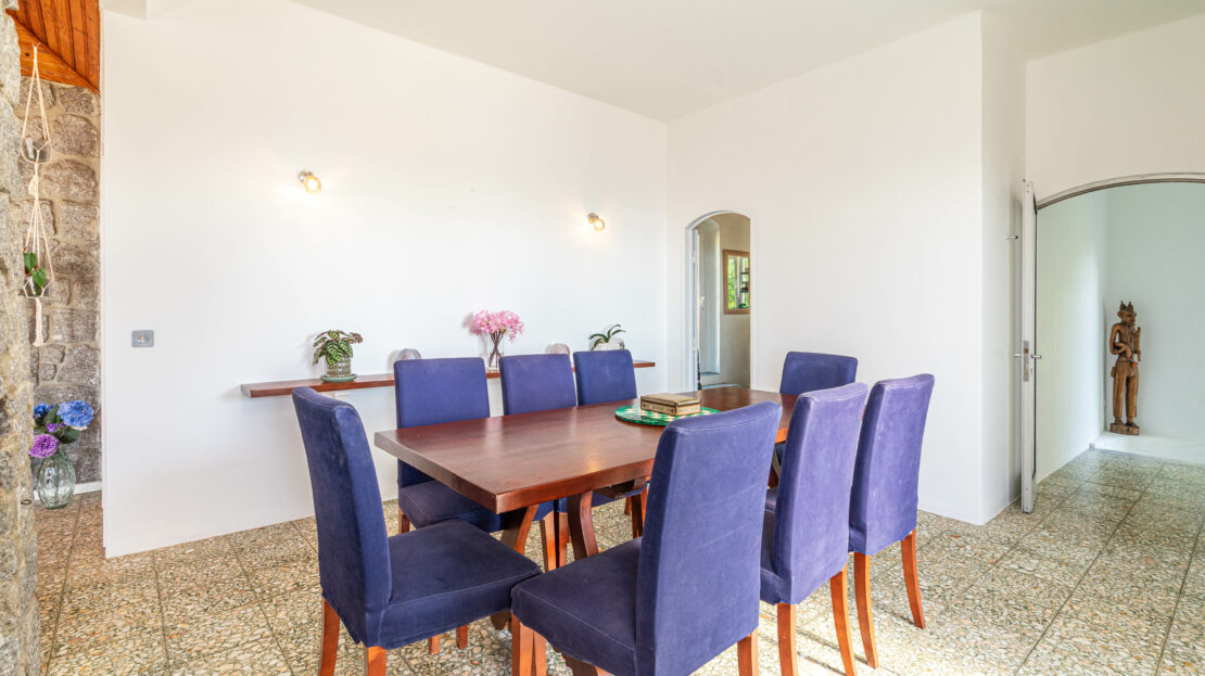 O jardim, com imensa vegetação e diversas árvores de fruto, oferece um verdadeiro oásis privado que se integra harmoniosamente no cenário natural envolvente. A piscina e o terraço ajardinado são o local ideal para relaxar e apreciar as vistas inspiradoras sobre a serra e o mar.